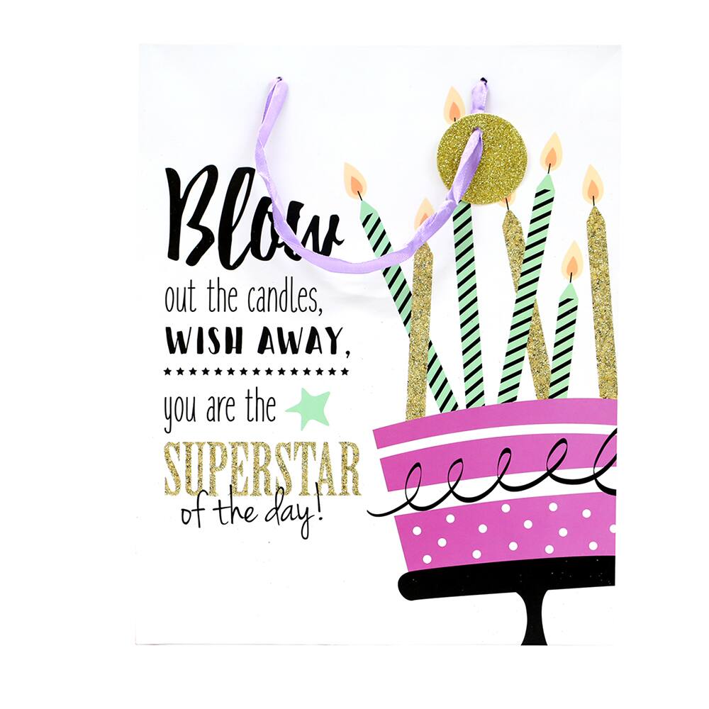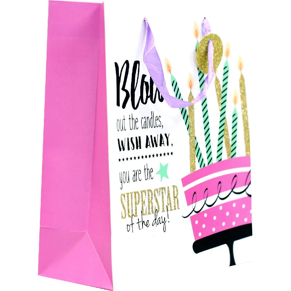 Sacola para presente, Happy birthday 3D, 30cm x 42cm x 12cm, Sortido, Tuut - PT 1 UN