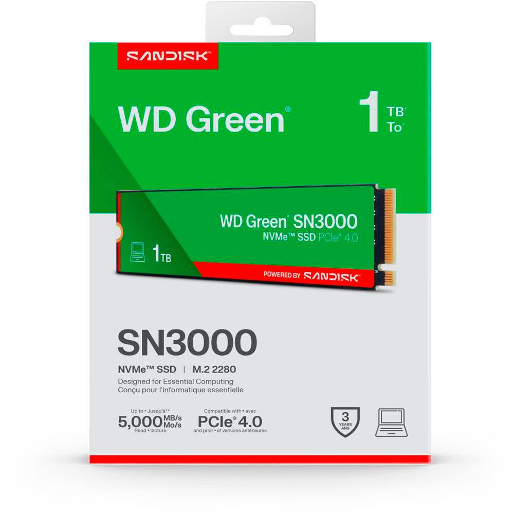 SSD 1TB WD Green, SN3000, M.2 2280 PCIe Gen 4 NVMe, Leitura 5000MB/s Gravação 4200MB/s - 100T4G0E, Western Digital - CX 1 UN