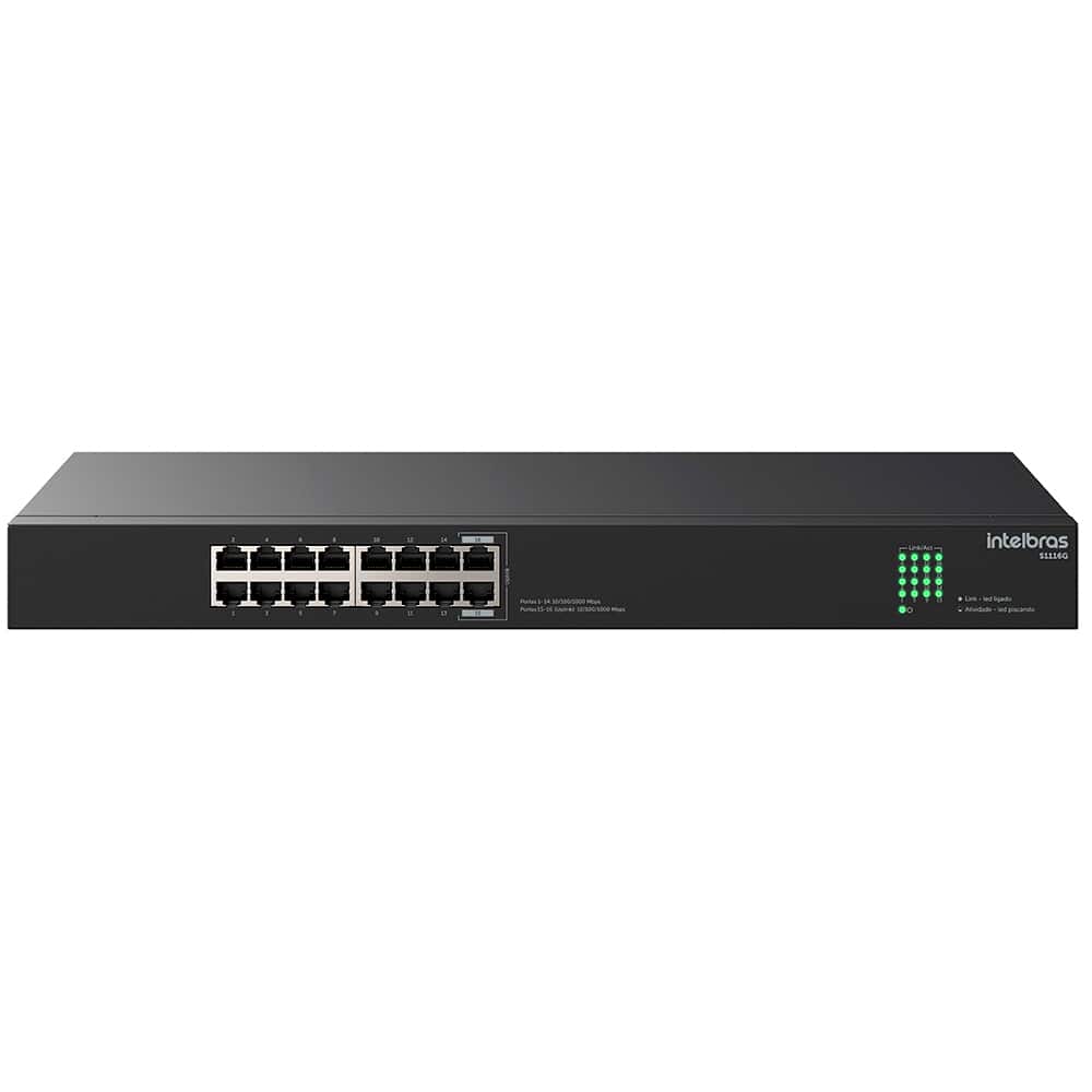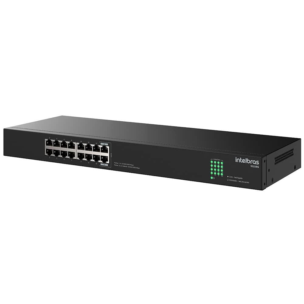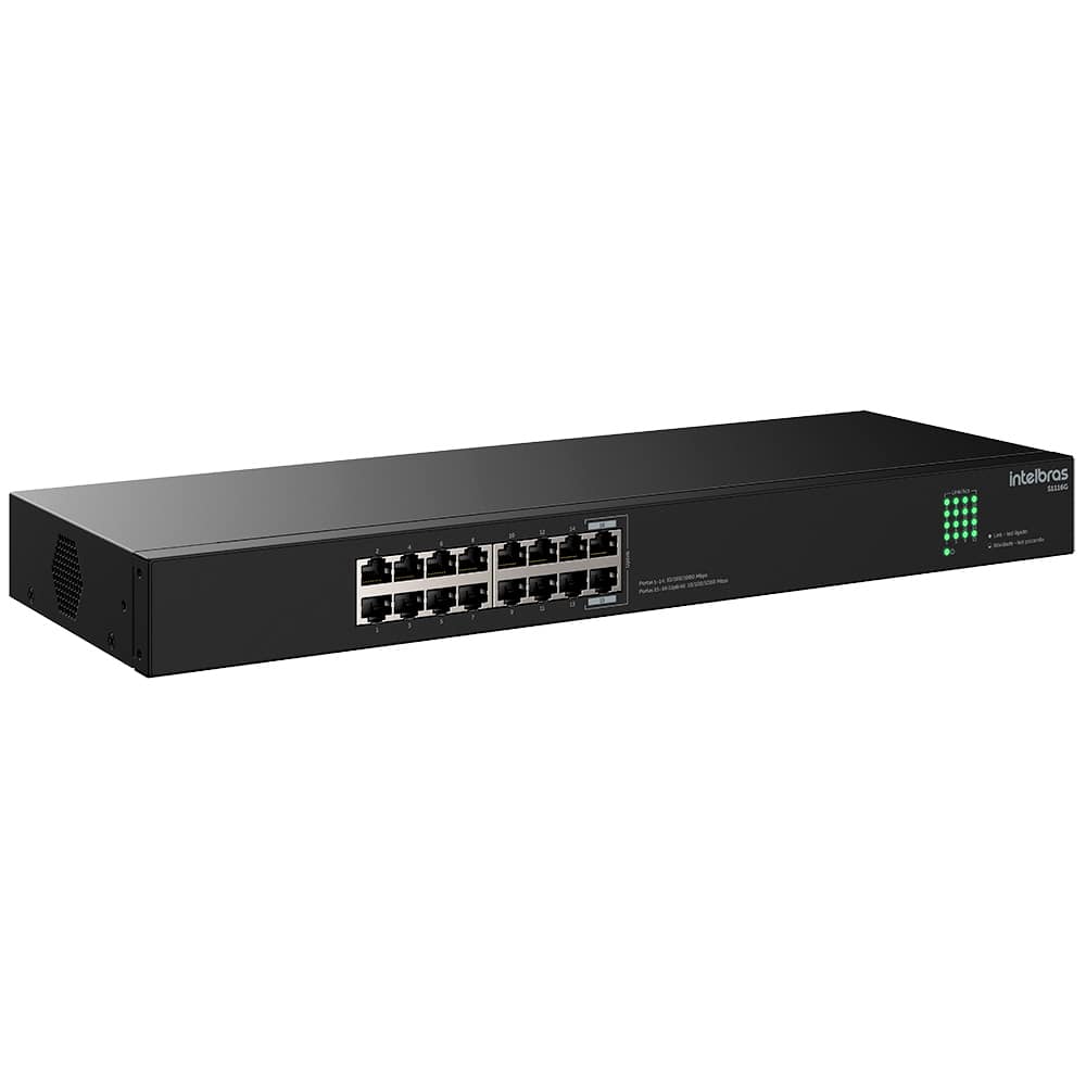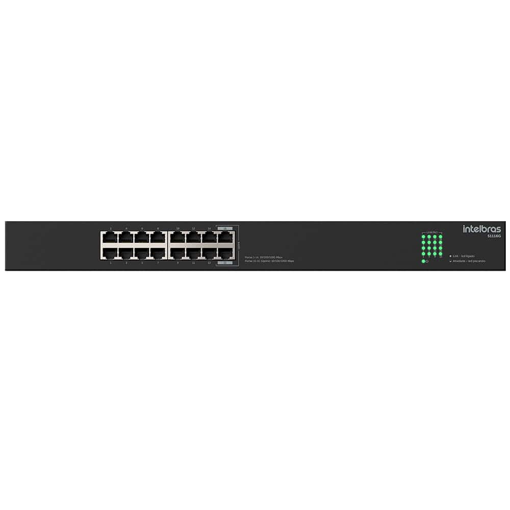 - Portas: 16 Portas RJ45 Gigabit Ethernet 10/100/1000 Mbps
