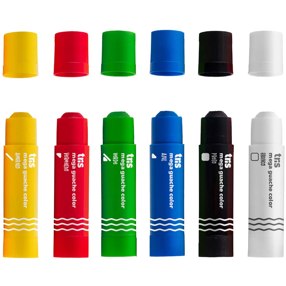 Tinta guache em bastão 6 cores mega 911124 Tris BT 1 UN
