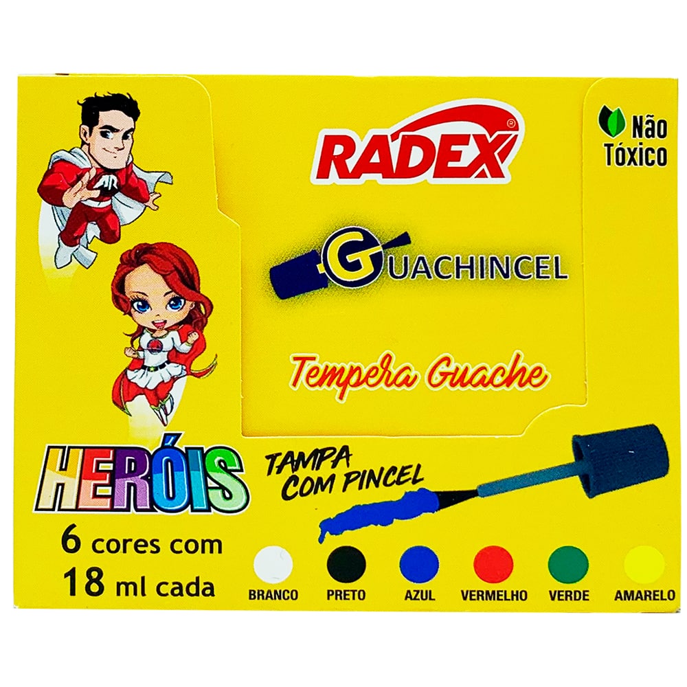 Tinta guache em pincel 6 cores primárias 18ml 7034 Radex CX 6 UN